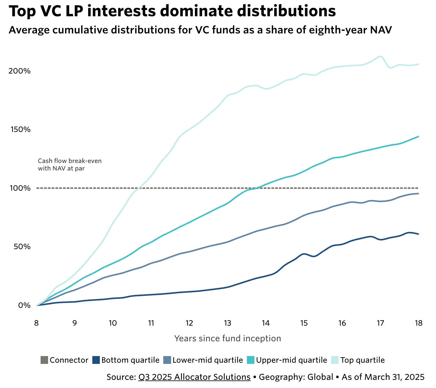LIQUIDITY | LPs have been hungry for liquidity, and Q3 finally delivered some movement! Secondary sales of fund stakes reached all-time highs as underperforming funds (and ample patient capital) sought an exit. For perspective: 2024 set a record with $160B in secondary sales, and 2025 is already on track to beat it. The driver is clear, venture outcomes are looking more volatile, and LPs are leaning into more conservative ways to rebalance. Outside of just secondaries, Q3 also gave us 13 U.S. VC-backed IPOs, totaling $36.4B in exit value, up a casual 2,861% from last year. 💅🏽 That doesn’t mean the floodgates are open, but it’s a notable change in the tape. And there’s more in the queue: Wealthfront, with $88B in AUM, just filed for an IPO, and Jennifer Garner’s Once Upon a Farm is targeting a $1B debut. Liquidity is still scarce, but at least the headlines are finally moving in the right direction.